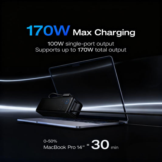 170W Portable Power Bank with Smart Display and Dual Built-in Cables